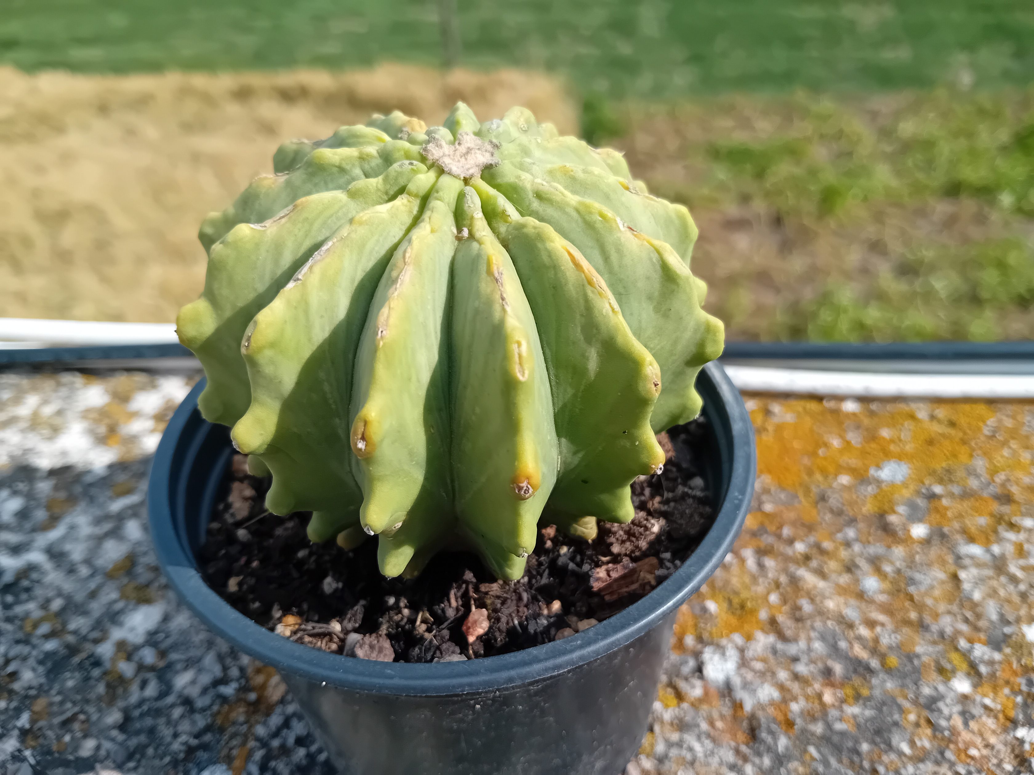 It’s a pretty impressive cactus if we look at it in detail. We can observe that it has a body in globular shape with a blue-green hue. Normally, no thorns come out, but there is always some exception, as is the case with the copy I have, which only has a single spike and this obviously makes it very difficult and very difficult to hurt you with it.