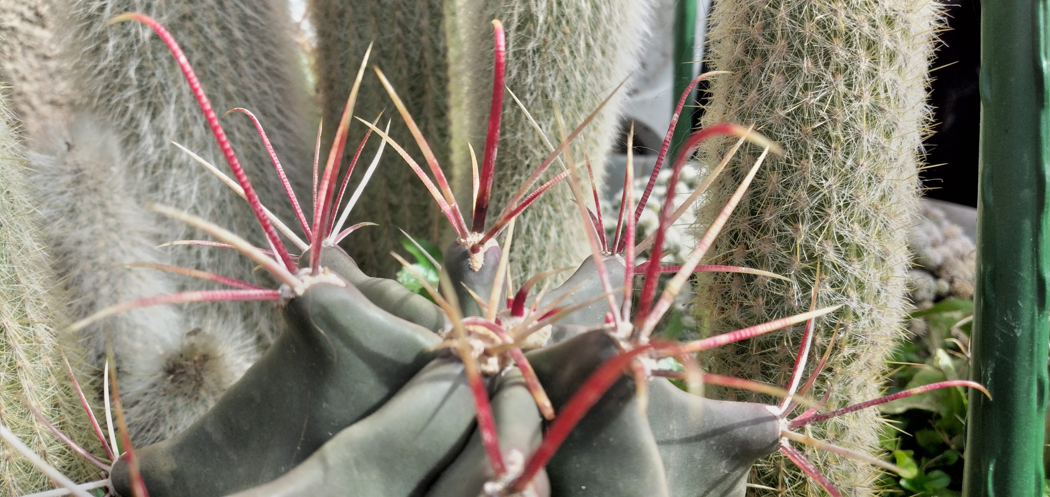 Here is Ferocactus Histrix, also known by the common name Bisnaga Electracantha. It usually comes from eastern Mexico and is widely distributed in different states. This species is one of the curious because as young they are light green and as they grow, they become bluish or grey. They are slow growing, although with age they can reach seventy centimeters in height by thirty in diameter.