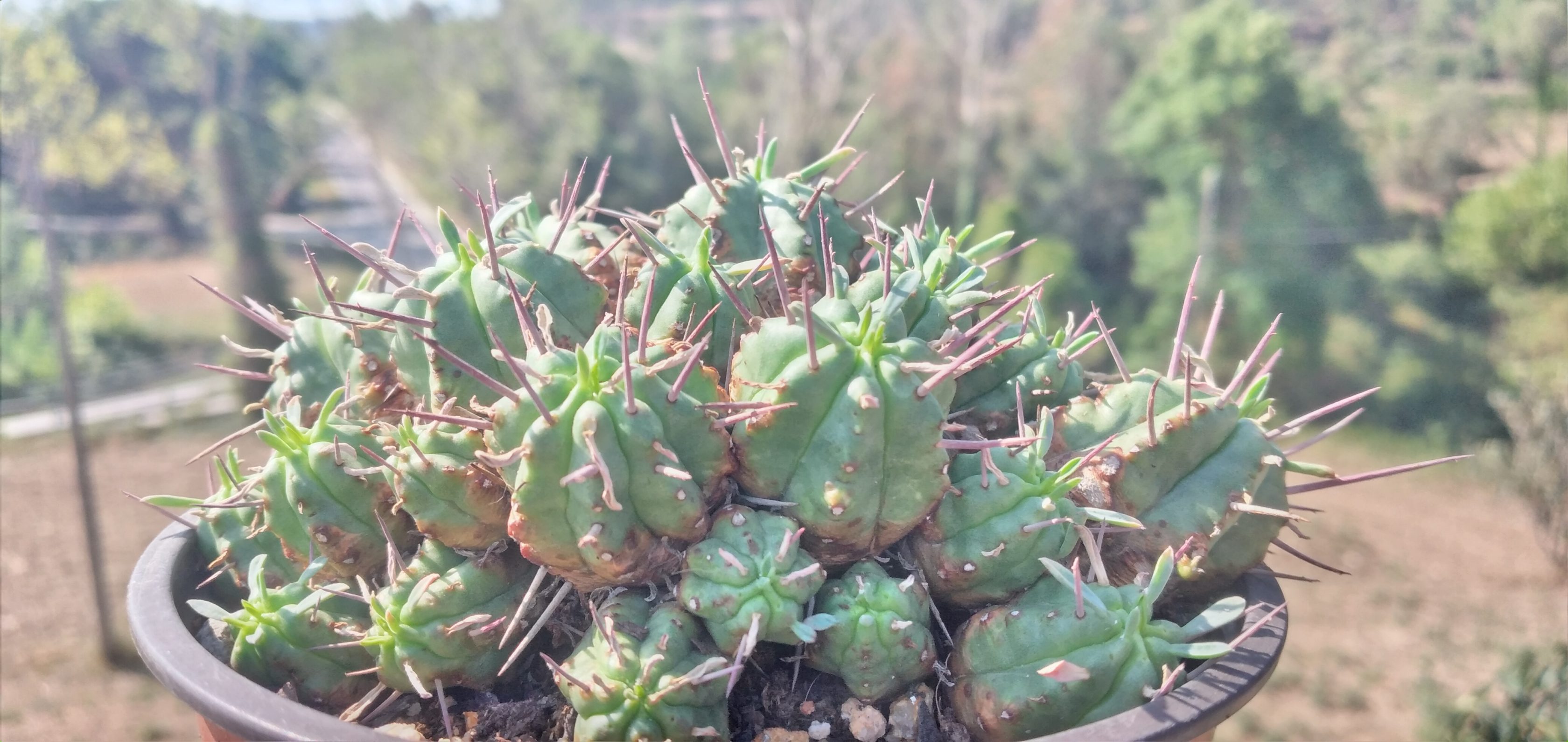 L’Euphorbia Aggregata, procedeix d’Àfrica del sud i es coneix amb el nom vulgar d’Euphorbia alternicola. És una planta suculenta que creix arbustivament, amb la condició que és nan. És forma a través de múltiples ramificacions que surten de la tija principal i amb les branques que estan arran de terra, aconsegueix una grandària de vuit centímetres d’altura. Les branques verticals mesuren de dos a tres centímetres de diàmetre.