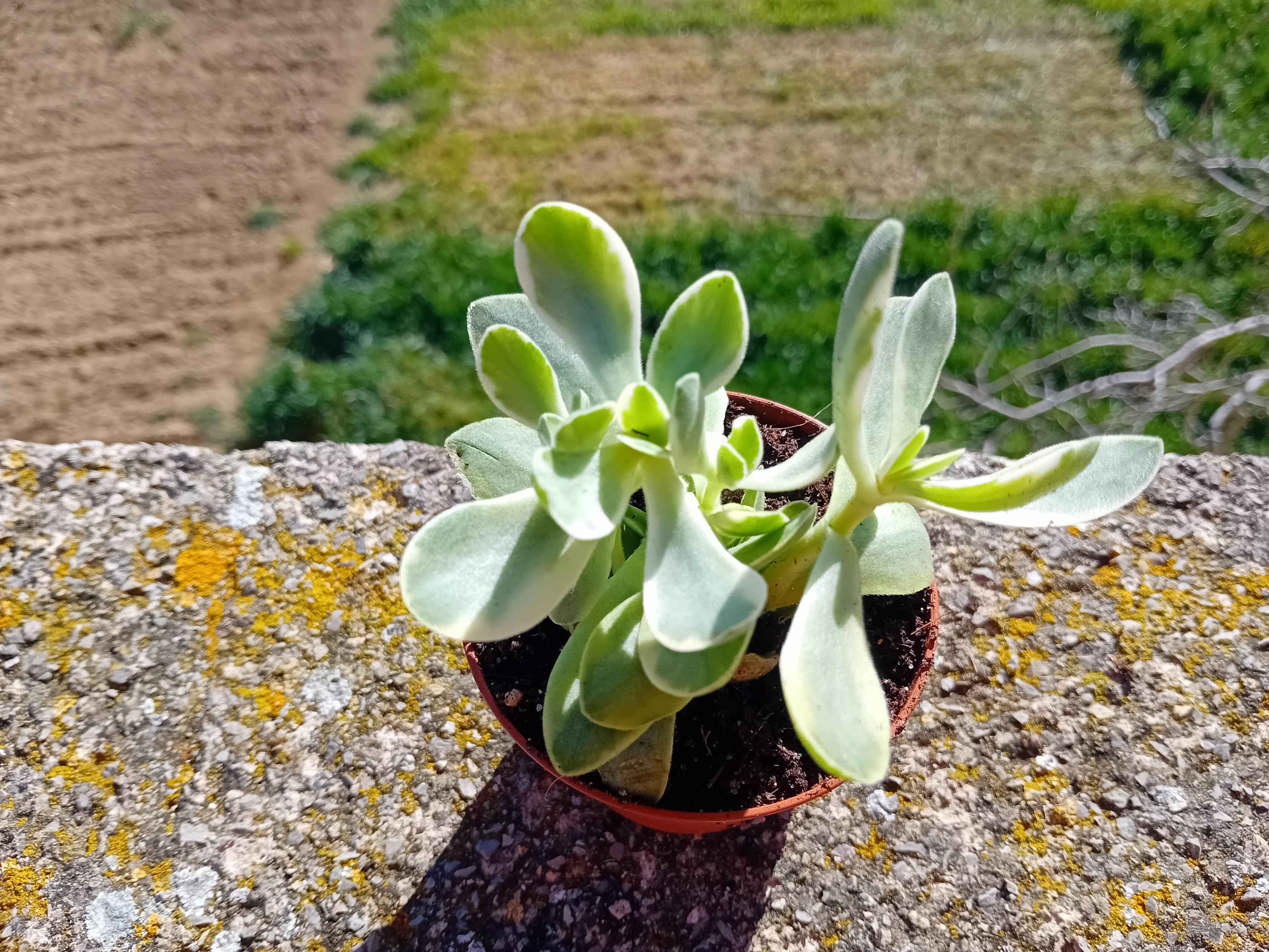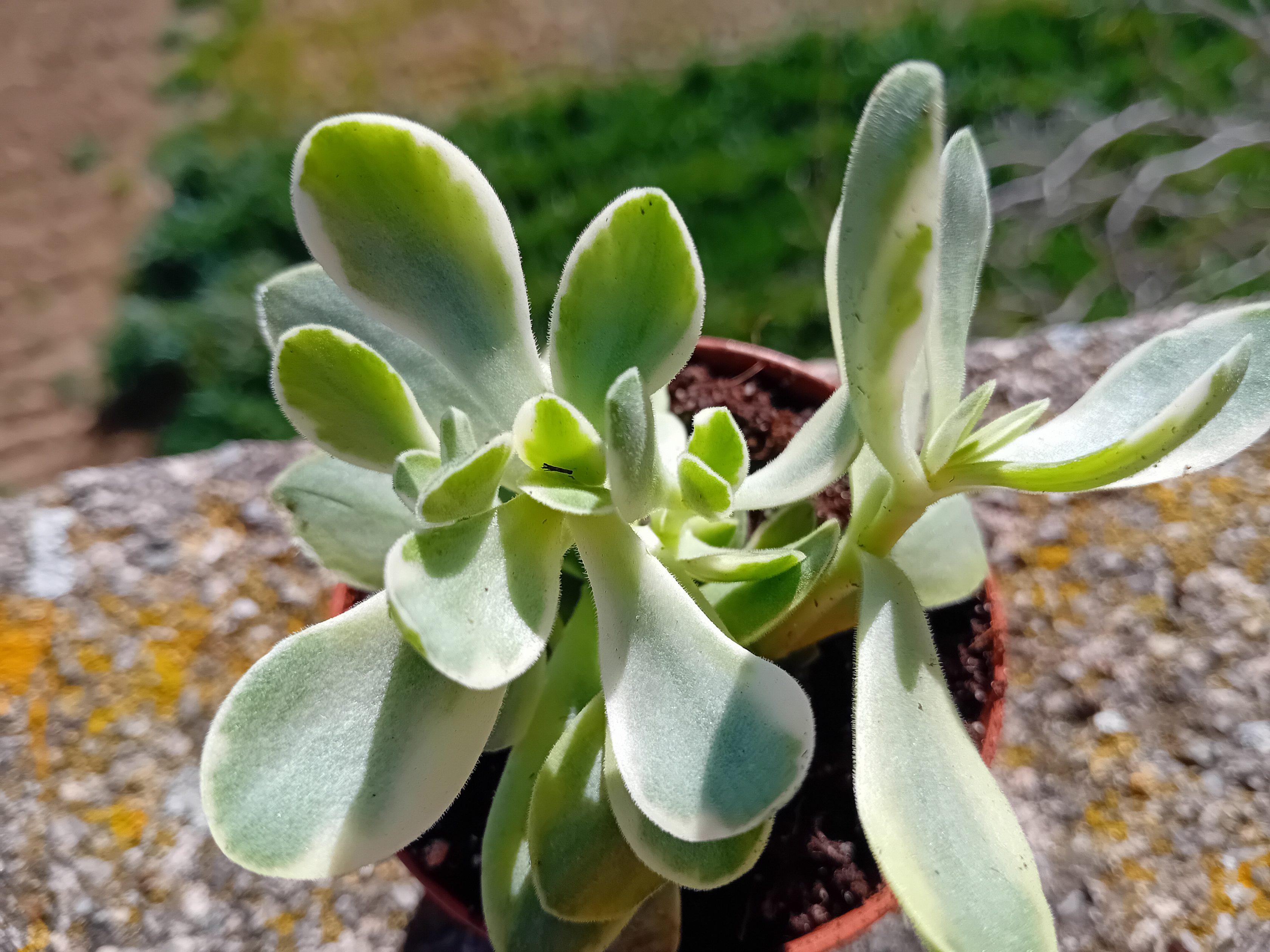 És una de les plantes més ramificades que hi ha, i si ens la mirem des de sobre, observarem que la disposició de les fulles és en forma de roseta. Normalment, tenen una coloració blanquinosa o una barreja de verd i groc i sovint les fulles més velles es tornen vermelloses amb ratlles porpres.