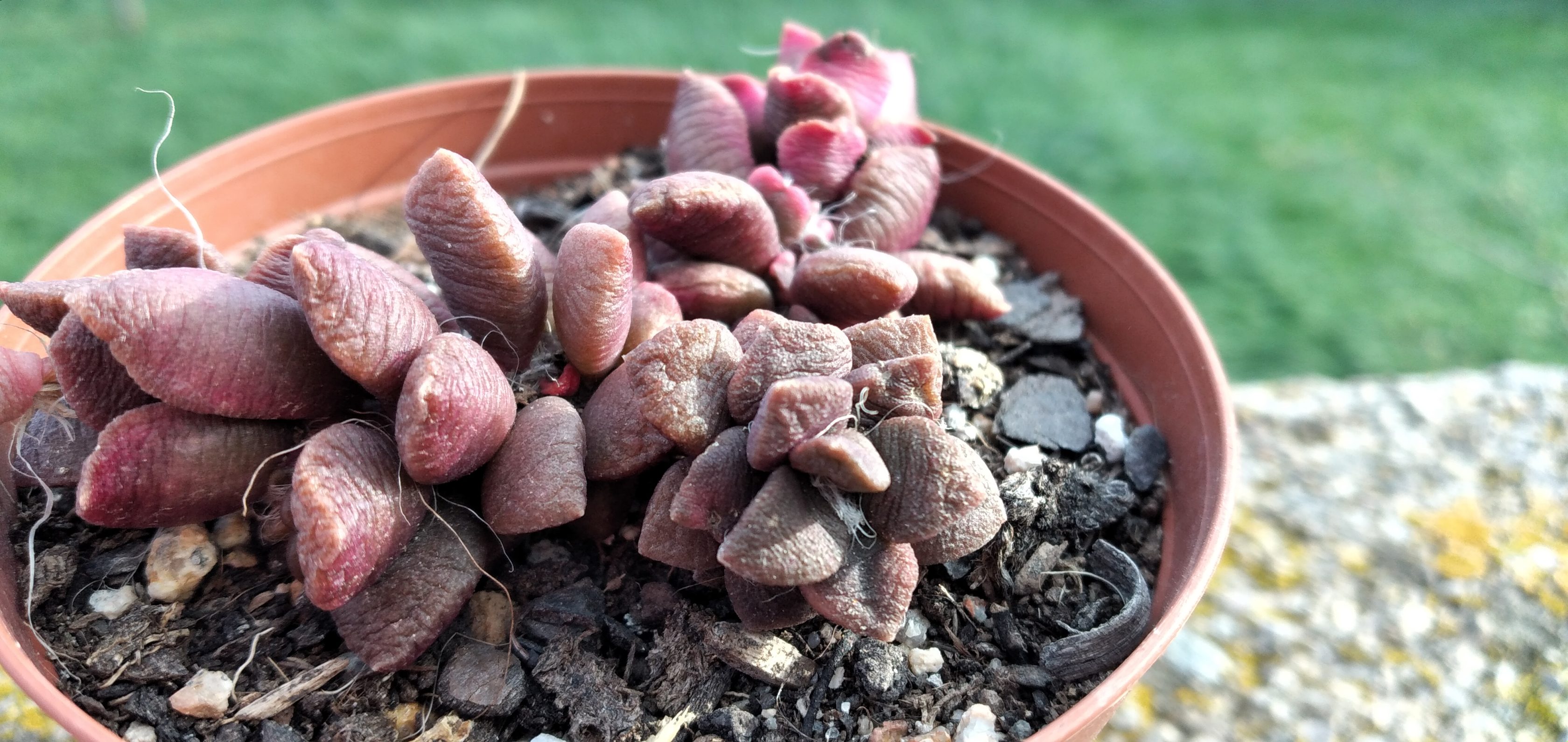 Aquí presento la suculenta Anacampseros rufescens cv. sunrise. Es coneix pel nom comú d’Anacampseros sunrise. Originari de Sud-àfrica. Té un creixement lent i forma petits grups amb forma de roseta. Les fulles són carnoses, acabades en punta i amb colors que varien del verd o groc pàl·lid al vermellós. Tot depenent de l’exposició al sol.