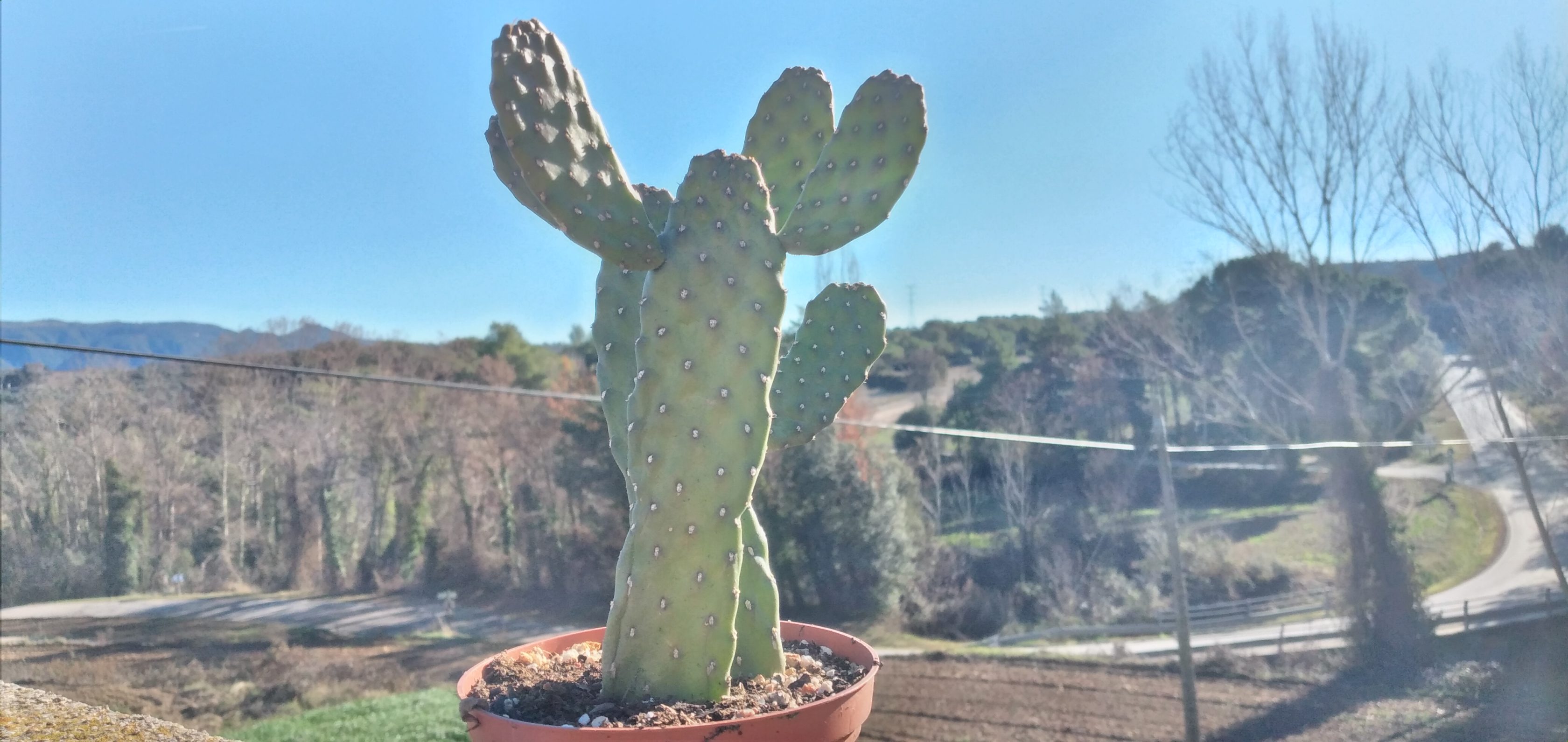 La Consolea Rubescens o cactus atropellat, és un cactus de la família de les Opunties d’allò més curiós. És extremadament pla a excepció de la base, que és lleugerament cilíndrica, però de seguida s’aplana. Creix en forma d’arbre i sorprenentment pot arribar a fer sis metres d’alçada. La base a part de ser cilíndrica està lleugerament comprimida pels costats, i pot fer fins a quinze centímetres de diàmetre.