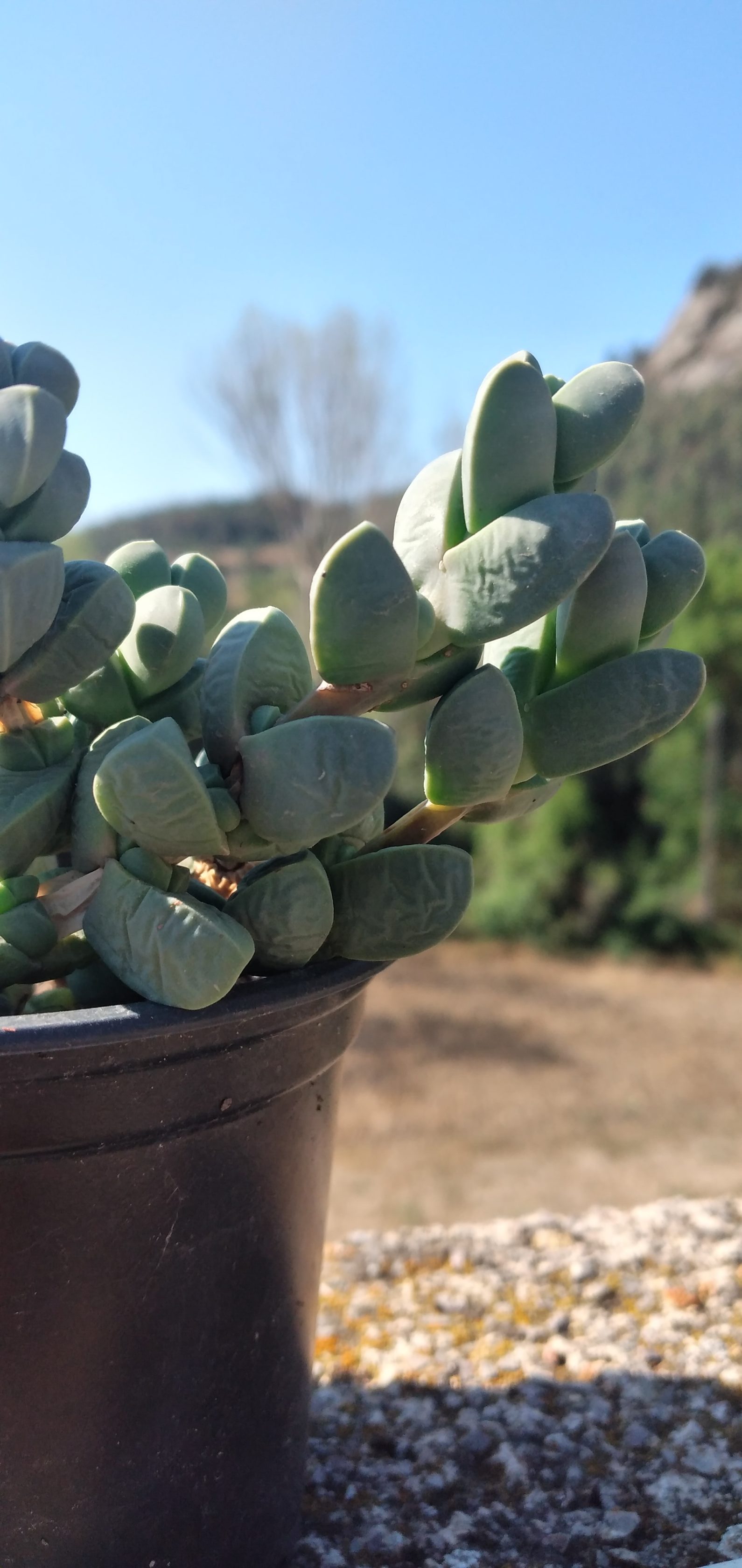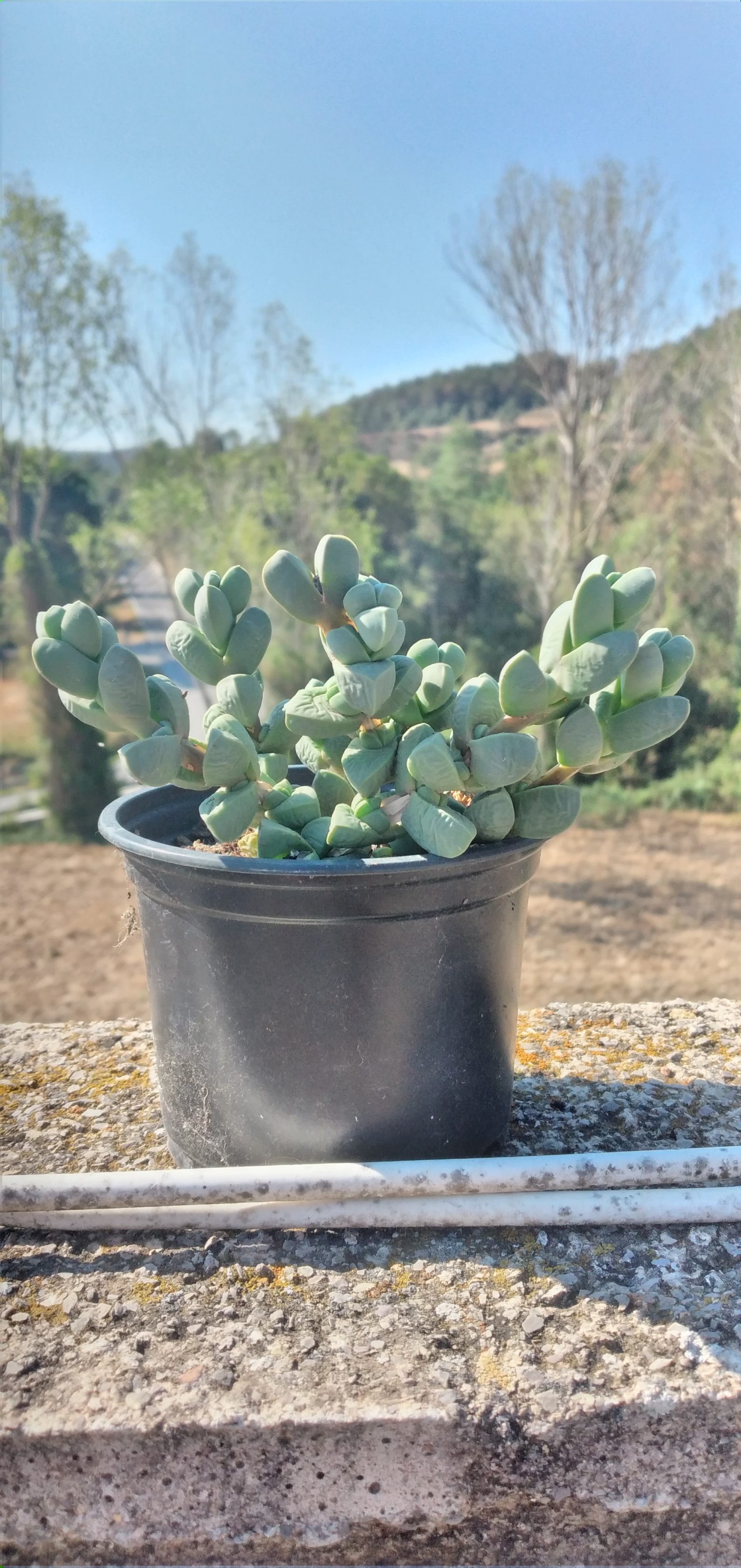 Les fulles també d’un color verd-grisós tenen tres cares i s’uneixen les tres a la punta donant una mica de forma rodona. Curiosament, també creixen en parells oposats, és a dir, us poso un exemple, si una fulla creix mirant al nord, l’altra neix de cara al sud i estan unides per la base. No són gaire grans, fan uns dos centímetres de llarg per un d’ample. Necessita llum solar directa si volem que ens floreixi i també per a reproduir-la. A l’estiu, ja sigui si esteu en una zona molt calorosa o són aquells dies on el sol és molt calent, caldrà proporcionar semi ombra, sigui utilitzant un para-sol o si és possible movent-la directament a un lloc on no li toqui el sol directament.
