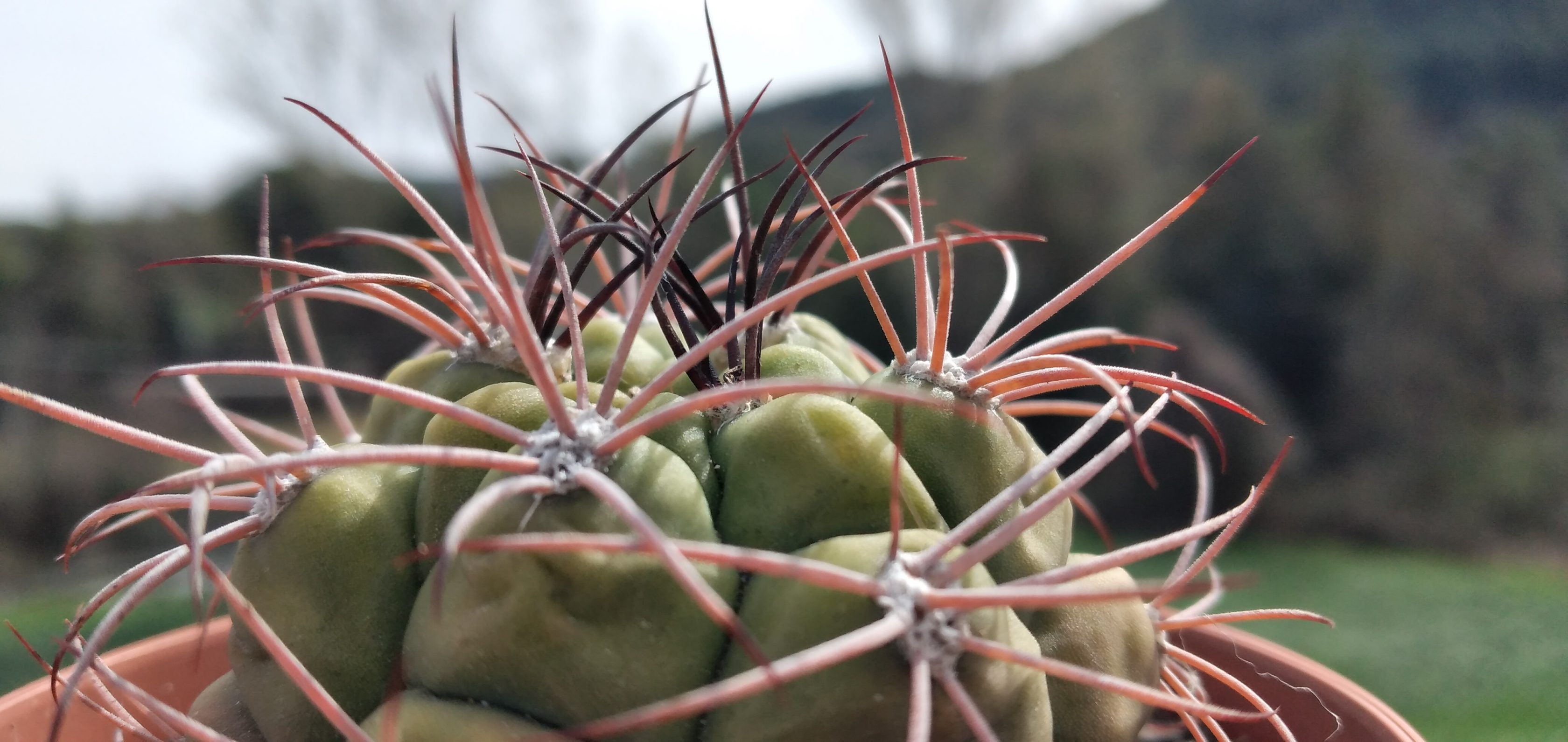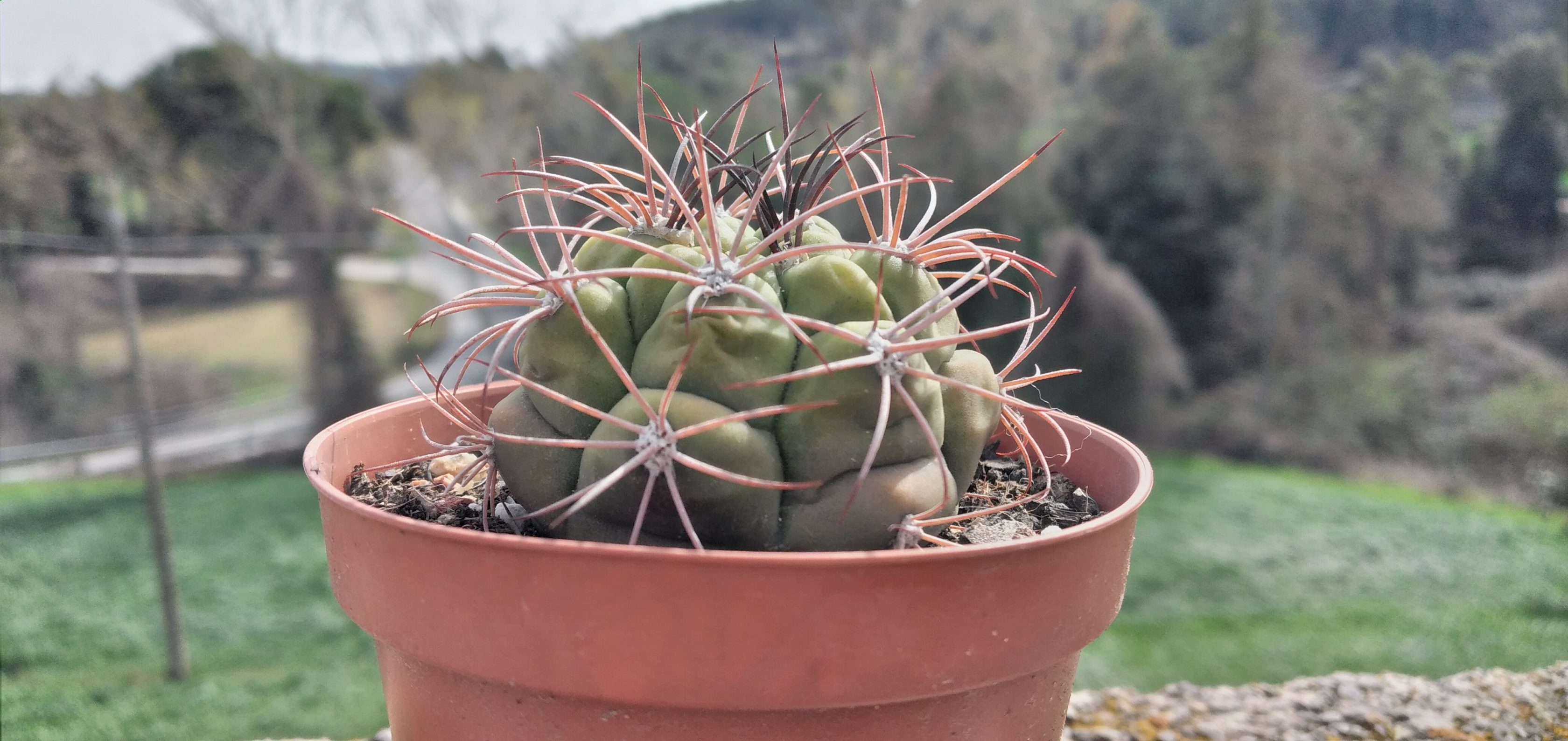 El Gymnocalycium Saglinois és un cactus endèmic d’Argentina i es coneix amb el nom vulgar de Cactus Mentó Gegant. Té forma globular i amb el temps es torna columnar. El cos té entre quinze i trenta costelles que tant poden ser rectes o en espiral i d’aquestes, a les arèoles surten de deu a quinze espines radials i entre dos i cinc de centrals, totes de color grogós o marronós, mesurant de dos a quatre centímetres.