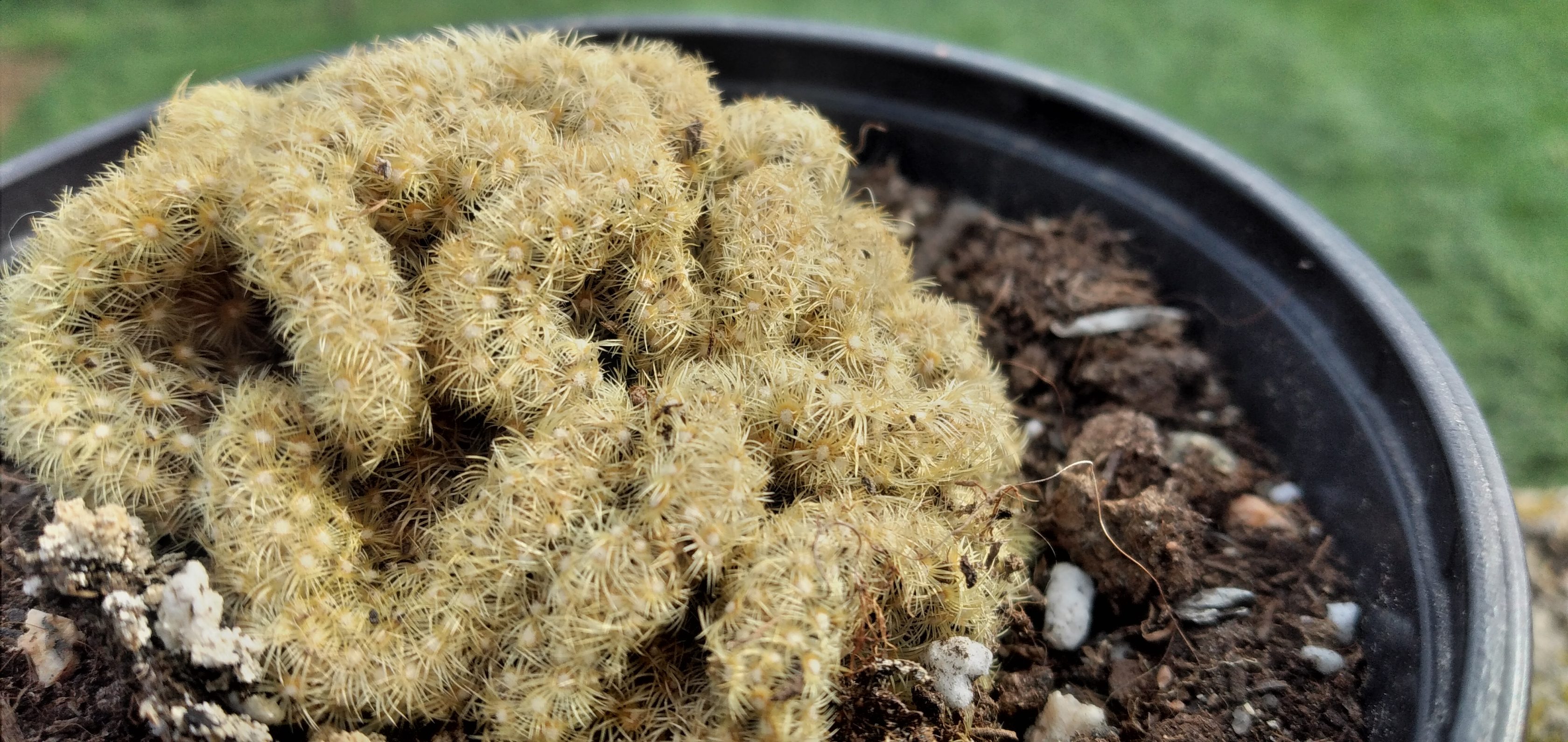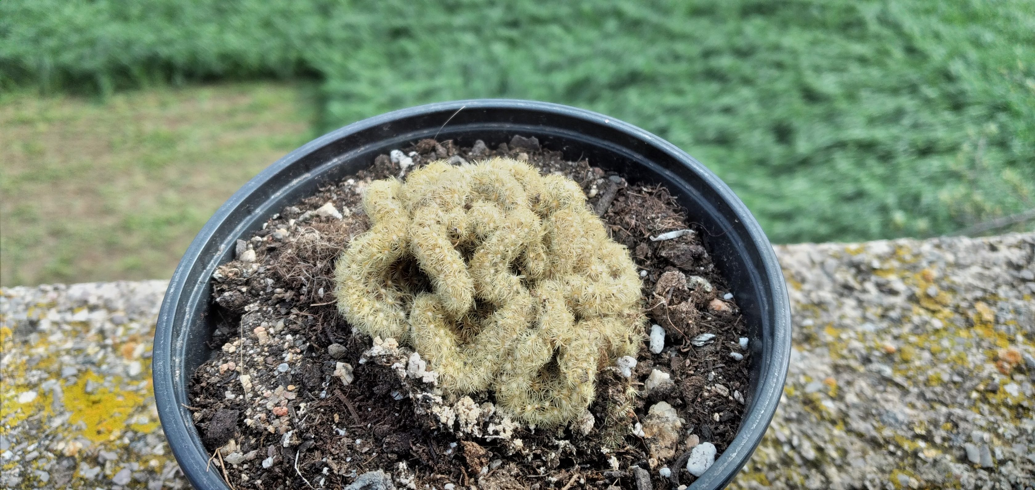 Avui us presento un dels cactus de forma més estranya i curiosa que he vist fins al dia d’avui. Es tracta de la Mammillaria Elongata Cristata. Com podeu endevinar pel nom, és la mutació o el cactus monstruós de la Mammillaria Elongata. Originari de Mèxic, principalment dels estats de Guanajuato, Hidalgo i Querétaro rep el nom vulgar de Cactus Cervell. Atribuïm aquest nom a la forma que té. També, la seva tonalitat entre verd clar, daurat i tocs de groc el fan un exemplar excel·lent pels ulls dels amants dels cactus. Li agrada tenir una il·luminació directa, com més sol millor sense sobrepassar uns límits (procurar que el sol calent del mig de l’estiu no el cremi) i si a part de proporcionar-li sol i aigua, que ha de ser moderada i sempre esperant que la terra estigui completament seca. Hi ha gent que diu que s’ha de regar de la següent manera: un cop a la setmana durant la primavera i l’estiu, un cop cada quinze dies a la tardor i un cop al mes a l’hivern. Això podria ser acceptable si viviu en una zona on a l’època més freda la temperatura mínima no baixa dels quinze graus positius, però si esteu en una zona on la temperatura més baixa és menor als zero graus, jo us recomano que no ho regueu. Us proposo a canvi una altra freqüència de reg: entre un cop a la setmana i un cop cada quinze dies a la primavera i estiu, un cop al mes a la tardor i deixar d’aportar aigua completament a l’hivern fins a la següent temporada. I parlant de temperatures mínimes, aquesta Mammillaria pot suportar fins a dos graus negatius fins i tot, en moments donats pot suportar fins a sis graus negatius, això sí, només us aguantarà com a molt tres dies, seguidament morirà congelat.Si està ben cuidat i en condicions òptimes, tot i ser de grandària de petit a mitjà, pot créixer entre deu i quinze centímetres d’alt i entre vint i trenta d’ample. Per anar acabant puntualitzo les flors. En ser aquesta espècie de cactus que fan coronació de flors, ens podríem pensar que també crea una corona, però tot i que jo no n’he vist mai cap de florit, sé per altres persones que fa unes floretes molt petites (entre deu i dotze mil·límetres) de colors variats, com per exemple el blanc, el groc o el blanc. Finalment, per les plagues és un cactus molt resistent, però com tot té algun punt dèbil que acostuma a ser l’aranya vermella (falta d’humitat) o la cotxinilla cotonosa (massa humitat), que aquesta última també la podem conèixer com a cotonet.