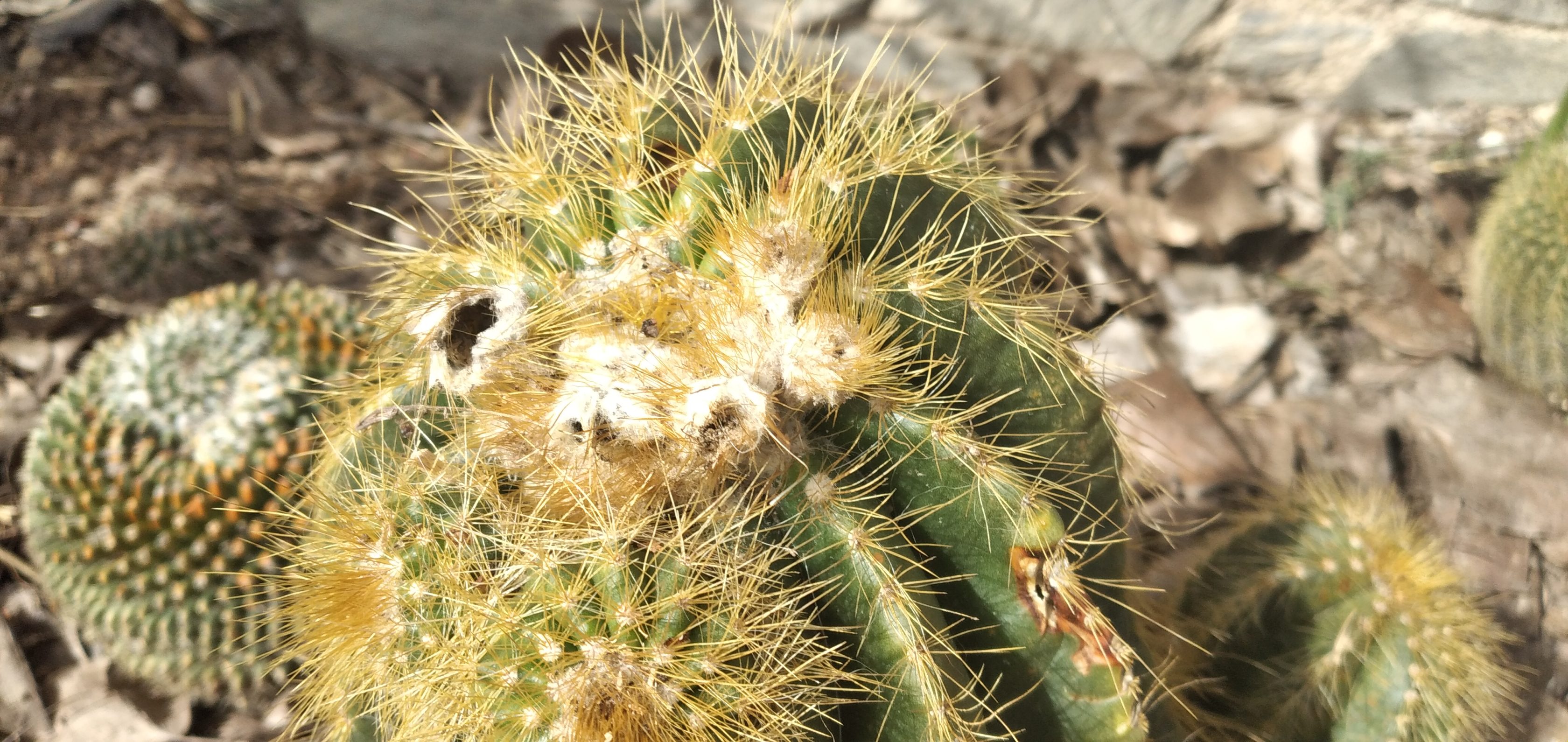 Avui us presento un cactus que em fa especial il·lusió, ja que amb aquesta espècie és amb la que tot va començar i vaig iniciar la meva col·lecció. Però no va ser fins uns anys més tard que la cosa va anar més seriosament. Bé, es tracta de la Parodia Magnifica, conegut amb el nom científic de Notocactus Magnificus o Eriocactus Magnifica i és procedent de Brasil. Tenen el cos verd-blavós, de forma globular quan és petit i canvia a cilíndric amb el temps. Pot arribar a créixer fins al metre d’alçada i té tendència a formar grans colònies amb una quantitat bastant considerable d’exemplars petits. És un dels gèneres de cactus que té les costelles més marcades, i de les que es veuen més clarament les arèoles i les punxes que surten de cada una d’elles. Tenen una llanositat que pot ser blanca o groga i un grapat de punxes també grogues o blanques d’un centímetre aproximadament.