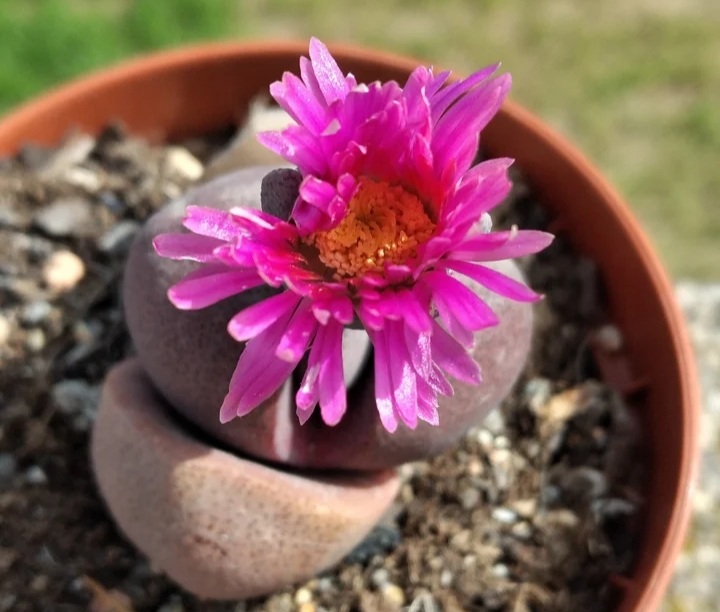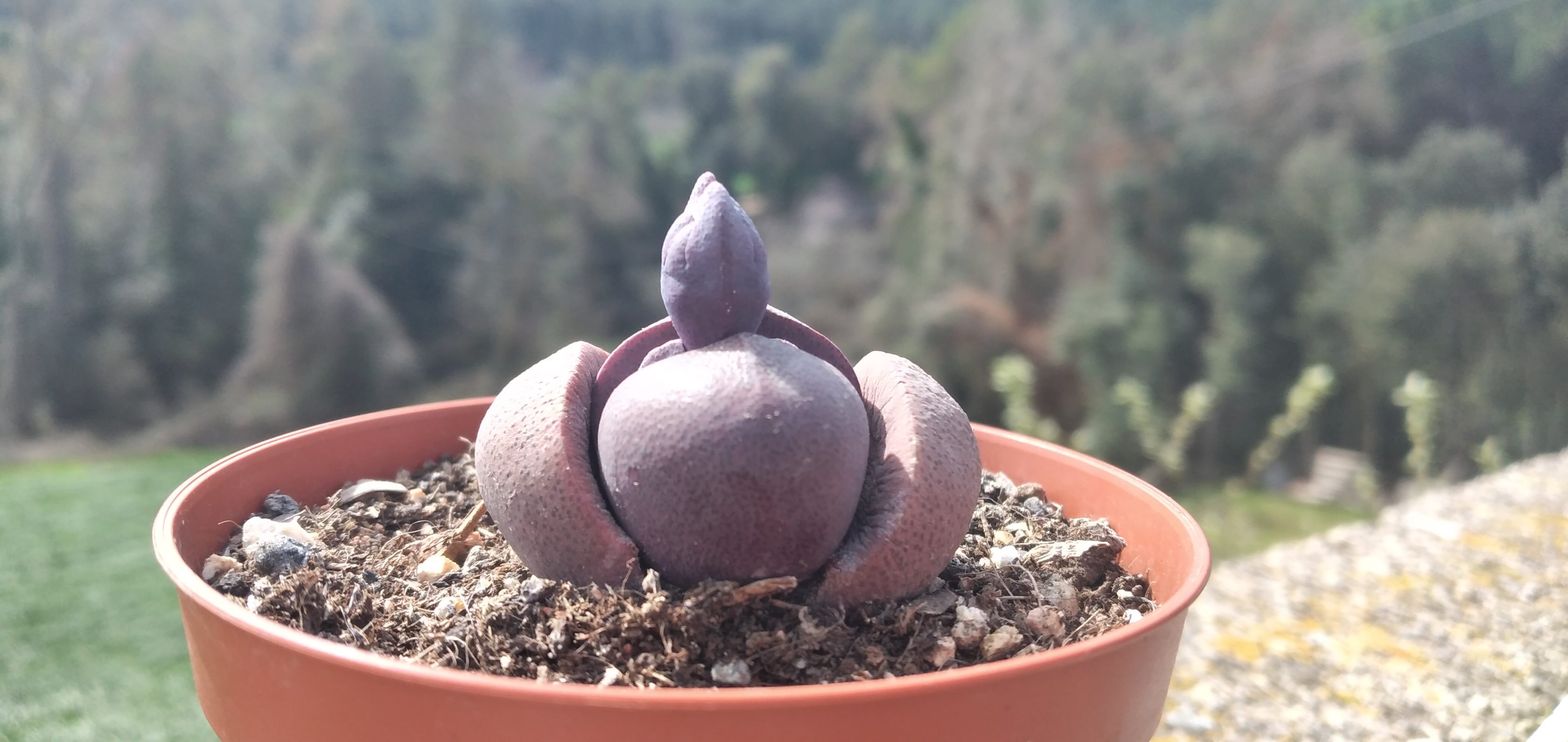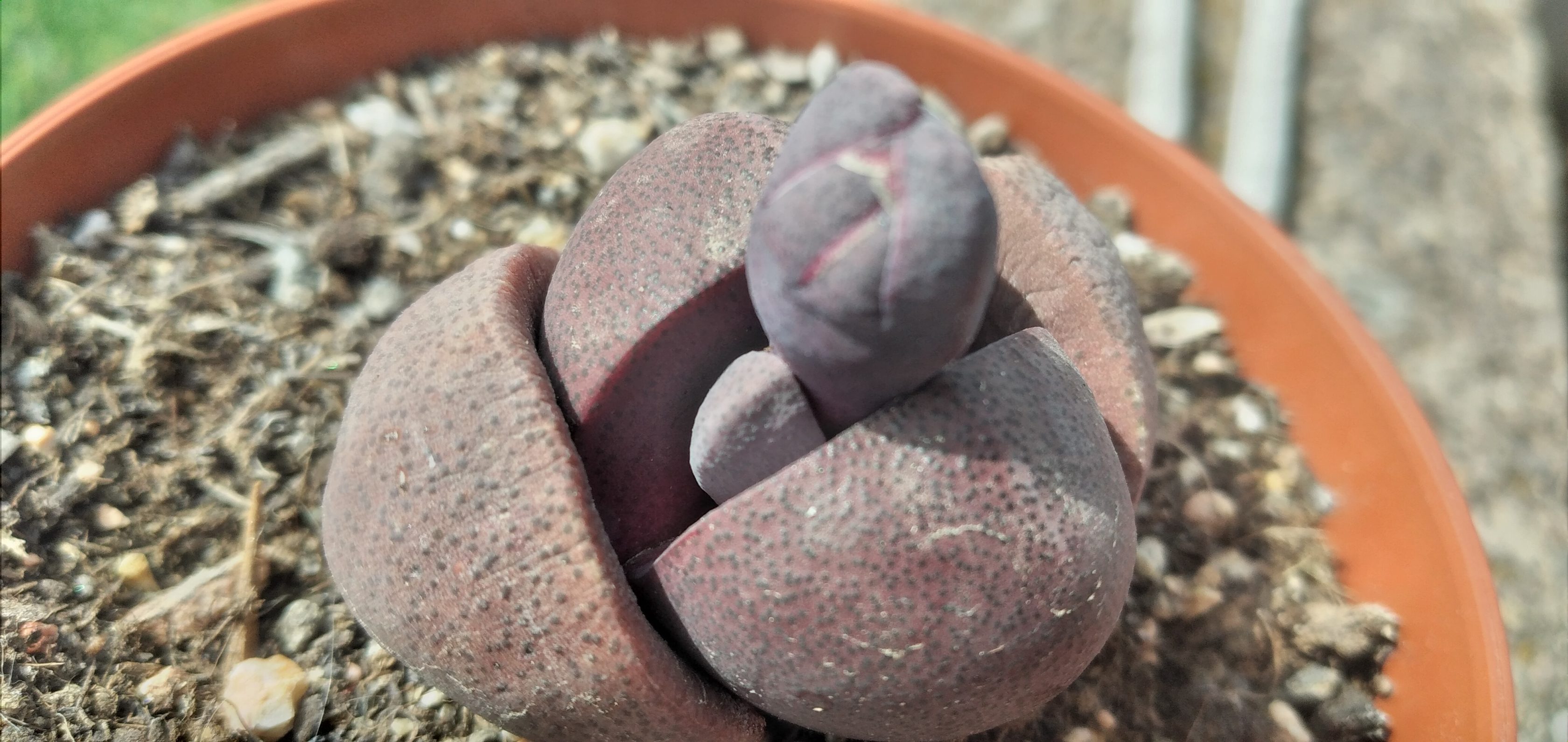 El creixement d’aquest cactus, el Pleiospilos nelii cv. Royal flush, és pràcticament igual als Lithops. Se’l coneix millor com a Pleiospilos royal flush i prové d’Àfrica del Sud. Està format per 2 o 4 fulles molt carnoses de color porpra o lila amb uns puntets molt petits de color negre que tenen relleu. Del centre de les dues fulles centrals n’apareixen dues més, i les fulletes velles es van assecant. Les noves surten en els mesos més càlids de l’any. Pel que fa al reg, ha de ser moderat a l’estiu i a l’hivern deixar de proporcionar aigua, perquè la capten de les fulles que es van assecant. A l’estiu, és molt important deixar que el substrat s’assequi completament abans de tornar a regar. Si no es té en compte aquest punt tan destacat i es rega si la planta no ho necessita, és una via molt directe de portar el cactus a la mort per pudrició. És un cactus bastant ideal per tenir-lo a l’exterior a ple sol o per tenir-lo a l’interior en una habitació on entri molta llum natural. S’ha de tenir en compte també que el sol directe pot cremar les fulles i això ocasiona que es deshidrati més de pressa arribant al punt de també morir si no se li proporciona una mica d’ombra. La floració és molt molt especial, ja que la flor és molt gran en comparació al format del cactus. Acostumen a ser de color rosa, amb el centre de color blanc. És una floració que és molt fàcil de perdre-se-la, perquè la flor s’obre a mitja tarda i es tanca al capvespre, en el moment que el sol s’amaga.