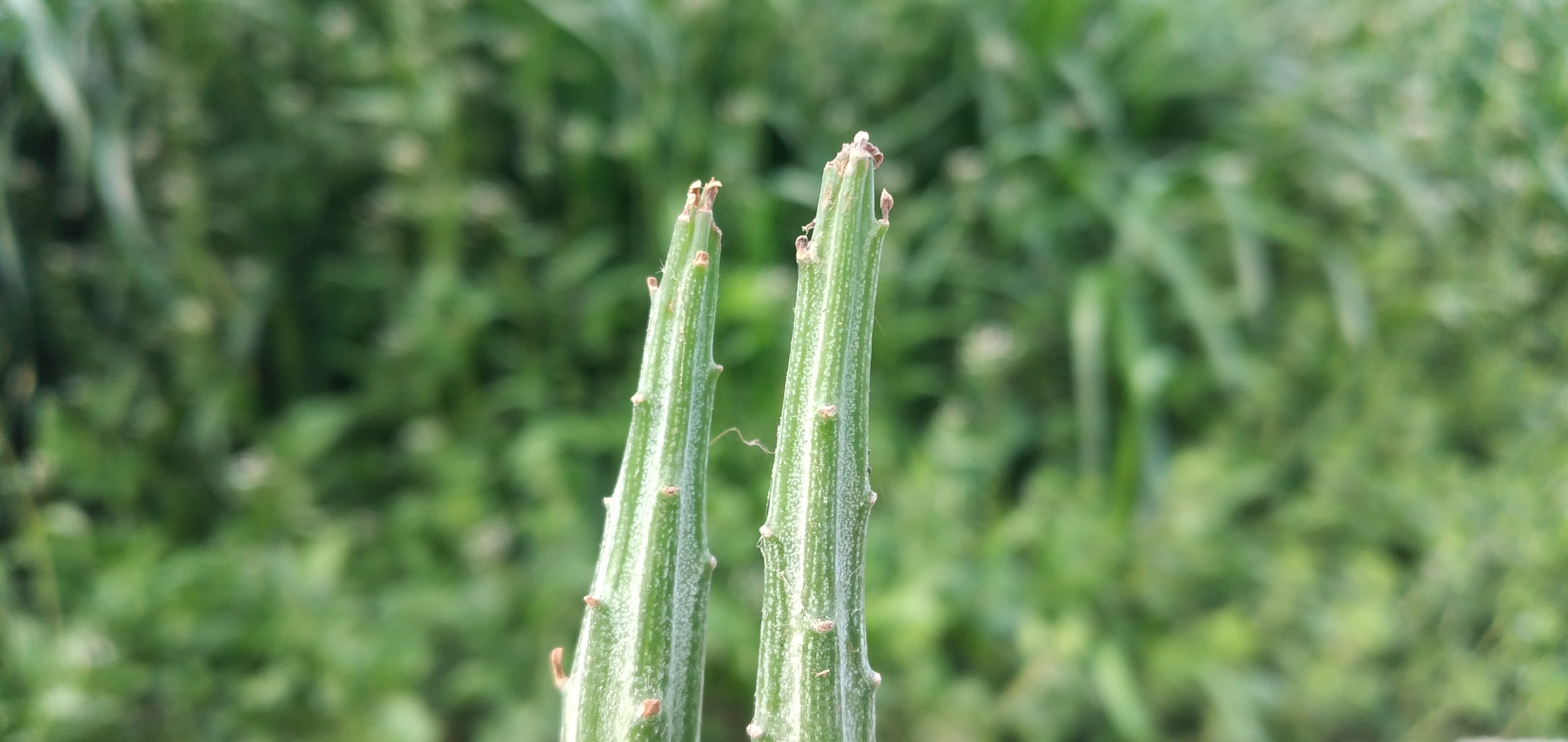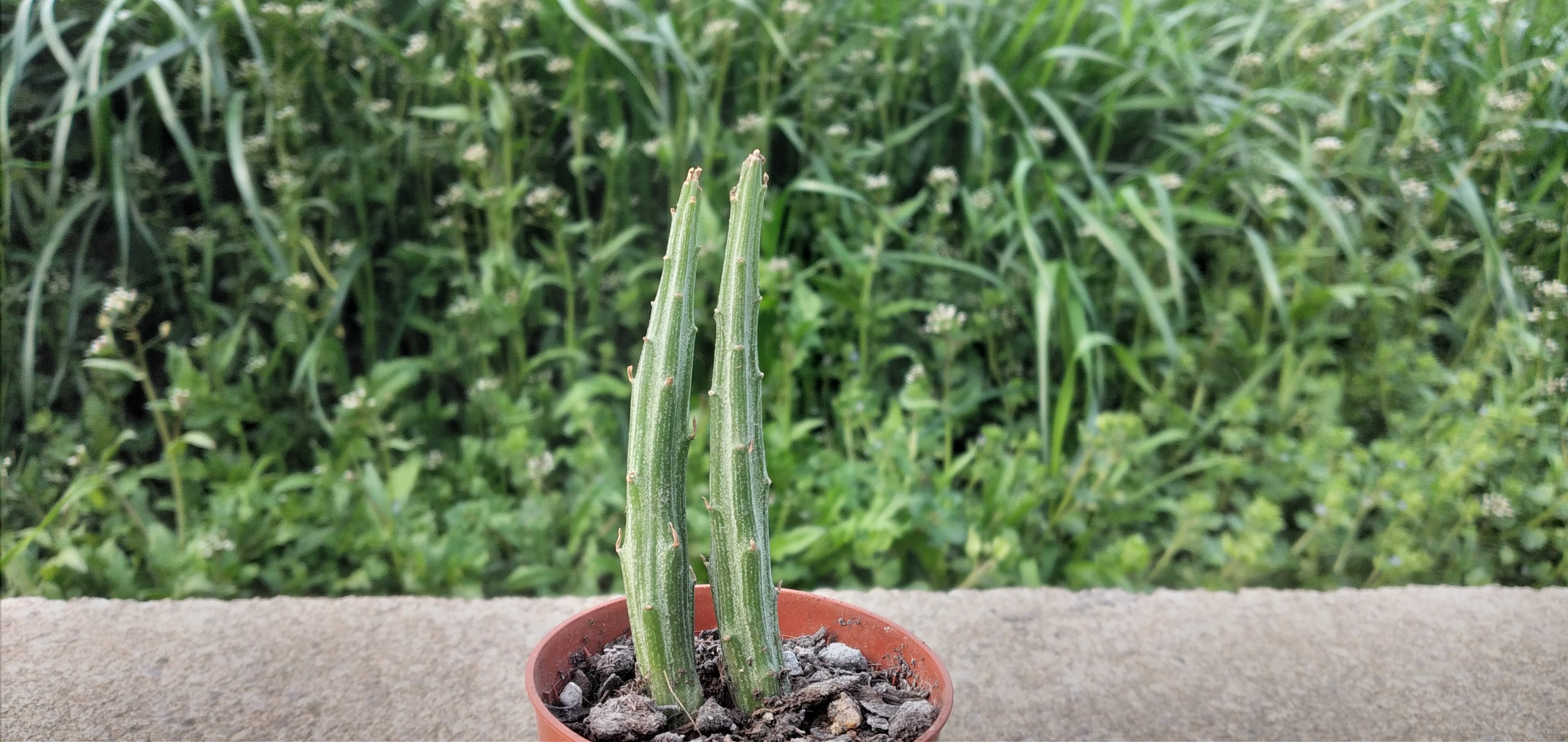 Aquesta espècie de suculenta anomenada Senecio Stapeliiformis o com es diu amb el sinònim llatí Senecio stapelia o com jo el vaig conèixer, com a cactus llapis, per la forma curiosa que té que recorda a aquest petit objecte. Els podem trobar repartits per Àfrica del Sud. Es caracteritzen per ser tiges úniques que es poden ramificar tant des de la base com des de les puntes. No acostumen a fer-se gaire grossos, arriben com a molt a fer trenta centímetres d’altura i són de color verd fosc i gris. Fa unes fulles molt petites que fan forma d’escata. Tot i que li agrada molt la llum del sol, no s’ha d’exposar a la llum solar directa, ja que us pot passar el que per desgràcia m’ha passat a mi, i és que el sol us el cremi. Sí que és cert que li agrada el sol directe, però sempre des de la precaució de les hores centrals del dia a les èpoques més caloroses de proporcionar-li una mica d’ombra, si no us passarà el que ja he dit, que es pot cremar i, per tant, morir. El fa una suculenta ideal per tenir-la en interiors, al costat d’una finestra o en una habitació molt ben il·luminada, sense que li toqui el sol directe. Si el lloc on està li agrada, podrem gaudir de la seva floració, doncs és una de les espècies que fa les flors més persistents de totes alhora que molt maques i vistoses. Són de color vermell i les podrem apreciar entre finals d’estiu i mitjans de tardor. Per regar-los van al contrari que pràcticament els altres cactus i suculentes exceptuant algun gènere. La seva època de repòs és a l’estiu i l’època de màxima activitat és a l’hivern, quan a diferència dels altres, a l’estiu és quan estan amb activitat i a l’hivern en repòs. Doncs tenint això clar, a l’estiu s’haurà de regar molt poc, com a molt un cop al mes i regar moderadament la resta de l’any esperant això sí que la terra estigui completament seca abans de tornar a subministrar aigua. No convé que la temperatura inferior baixi dels vuit graus positius.