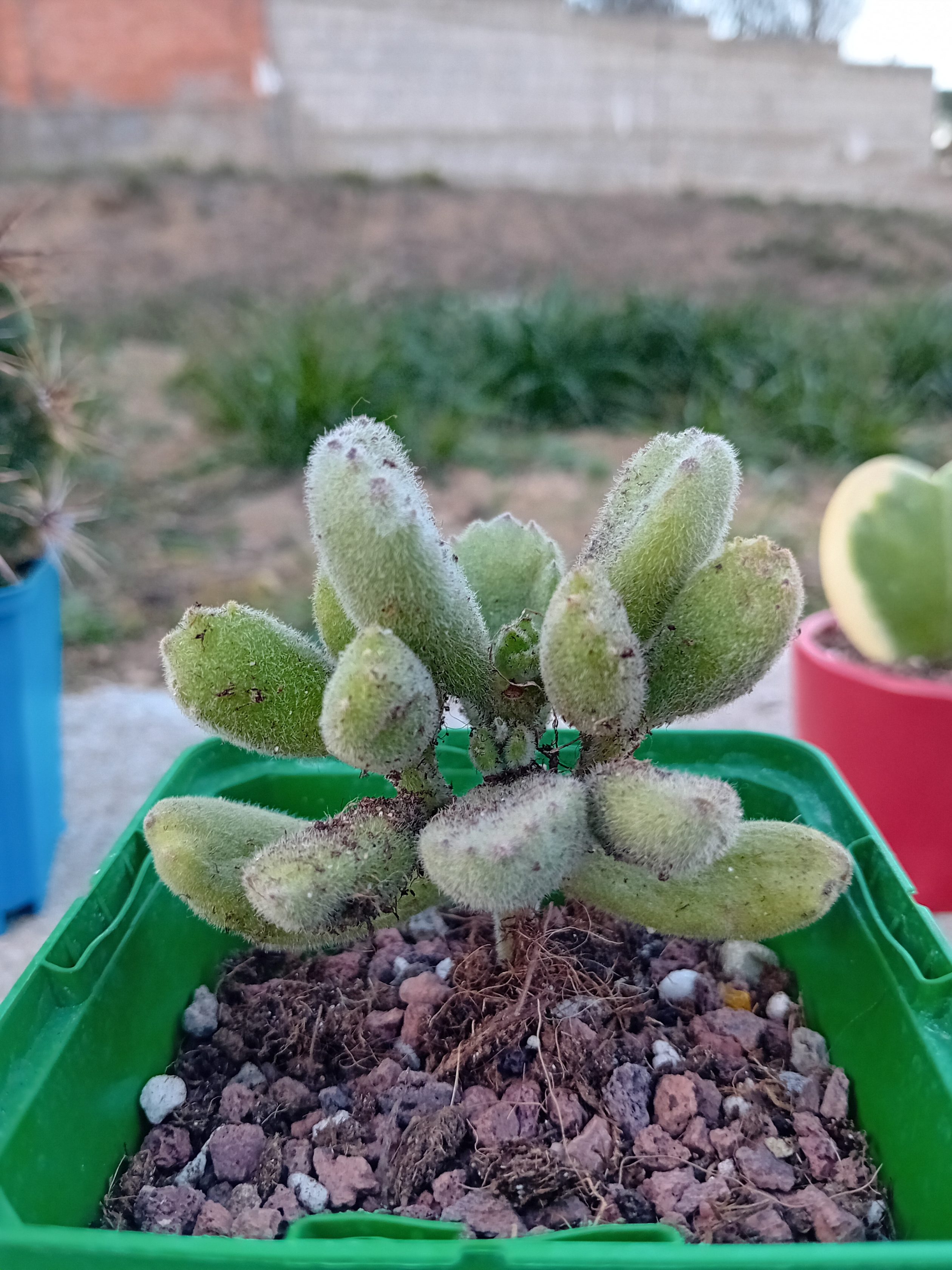 La Cotyledon ladismithiensis o pota d’ós que és el seu nom vulgar, procedeix d’Àfrica del sud, a la zona de El Cabo. És un cactus considerat una planta suculenta que consta d’unes tiges fines i amb vellositat que es ramifiquen i poden arribar a fer un metre d’alçada quan floreixen. Les seves fulles són carnoses, amb vellositat com he dit abans, de forma quasi cilíndrica, d’un verd viu i les puntes són dentades (d’aquí el nom de pota d’ós).